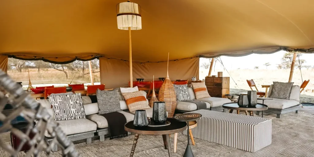This is not just a camp. It’s a journey that shifts with the rhythm of thundering hooves, golden savannah winds, and quiet sunrise moments. Designed as a luxury mobile retreat, Wilderness Usawa Camp relocates seasonally to shadow the herds of wildebeest, gazelle, and zebra as they traverse the vast plains of the Serengeti.